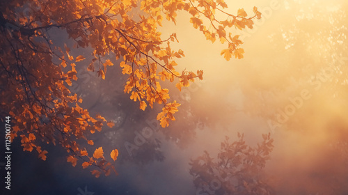 gold, autumn, leaf, visible, dense, mist, tranquil, serene, peaceful, atmospheric, nature, landscape, scenic, aethereal, countryside, rural, glowing, soft, idylli, calm, natural, breathtaking, picturesque, vibrant, hazy