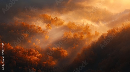 autumn, forest, gold, light, vibrant, foliage, nature, landscape, scenery, sunlight, tree, leaf, colours, mist, peaceful, warm, texture, seasonal, outdoors, background, natural, scenic, beauty, bright, enchanting, explore, travel, season, hill, fog, environmental, tranquil, rich, wood, panorama, hue, view, serene, breathtaking, atmosphere, daylight, soft, radiant