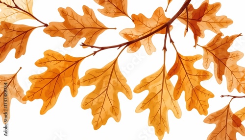 Golden Autumn oak leaves on a branch, capturing the essence of fall season
