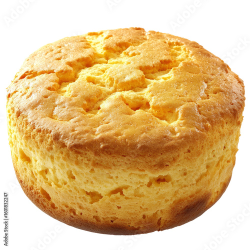 Golden Baked Sponge Cake Isolated On White. Delicious Homemade Treat, Perfect For Dessert Or Snack Time.