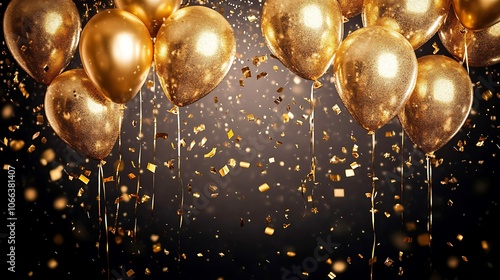 gold, balloon, confetti, party, celebration, festive, happy, event, background, shine, sparkle, glistering, decoration, design, joy, luxury, elegant, black, dark, abstract, blur, pattern, texture, air, glossy, shiny, bright, holiday, new, year, birthday, anniversary, wedding, love, romantic, magical, vibrant, cheerful, whimsical, joyful