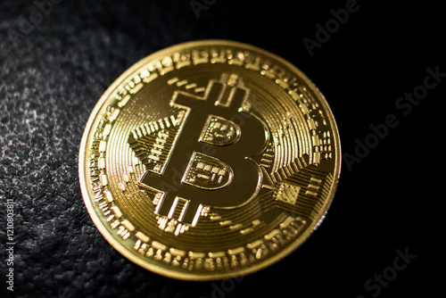 Golden Bitcoin Coin on Black Background