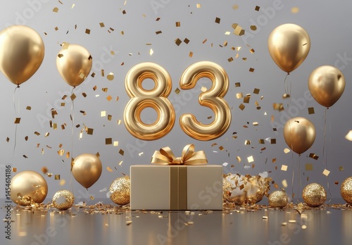 gold, celebration, birthday, party, balloon, confetti, gift, box, festive, event, decoration, number, 80, three, shiny, sparkle, fun, light, surprise, joy, background, gathering, cheerful, happy, elegance, anniversary, luxury, occasion, design, elegant, style, joyful, bright, gold, decoration, moment