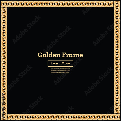 Golden Chain Square Border Frame. Rectangle Shape. Jewelry Design.