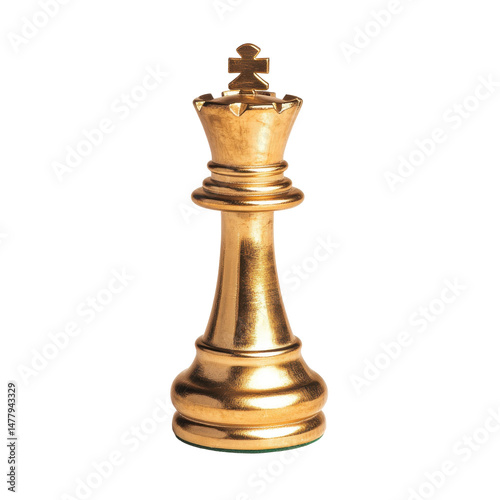 Golden Chess King Piece on White Background, Symbolizing Strategy and Leadership in Board Games on transparent background
