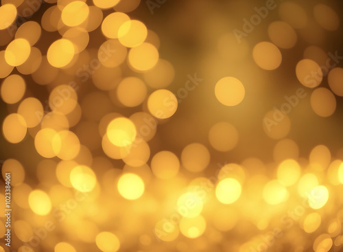 Golden Christmas background with abstract bokeh effect. Blurred glittering lights and sparkles create a luxurious atmosphere. Magical festive background with space for text, perfect for greeting cards