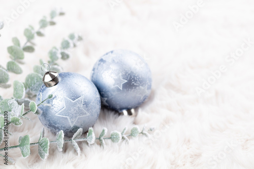 Golden christmas balls with wool background.