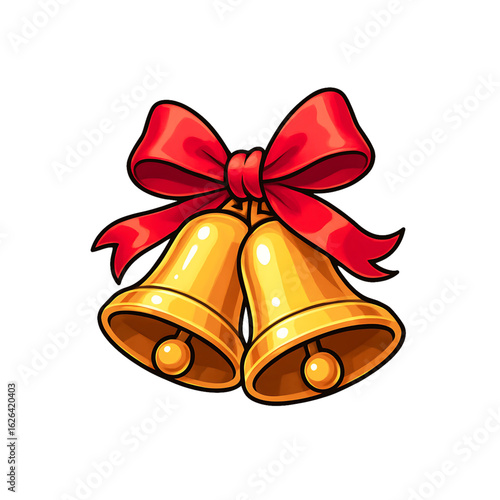 christmas, bell, holiday, festive, gold, gold, red bow, ribbon, jingle-bell, decoration, ornament, season, celebration, joyful, traditional, vector, illustration, cartoon, stylised, classic, winter, ringing, music, jingle, christmas, bell