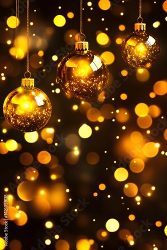 Golden Christmas Ornaments Sparkling Bokeh Background