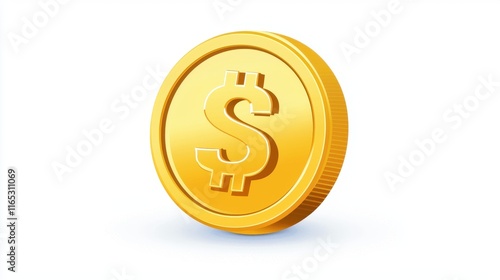 Golden Coin with Dollar Symbol, Currency Coin Representing Wealth and Financial Transactions in a Minimalistic Style Against a Clean White Background