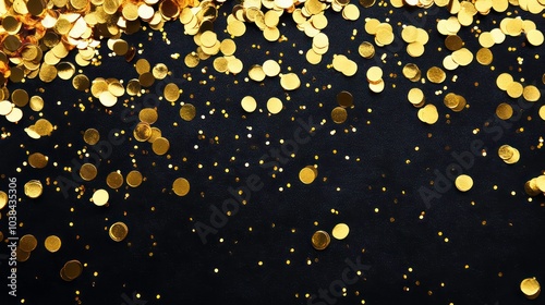 confetti, gold, black, background, celebration, party, festive, holiday, new year, birthday, anniversary, sparkle, glistering, shine, shimmer, happy, joy, bright, cheerful, elegant, luxury, abstract, design, pattern, texture, decor, decoration, event, frame, border, top, edge, copy space, blank, minimal, simple, christmas, wedding, joyful, fun, vibrant, scattered, random, overlay, graphic, element, modern, stylish