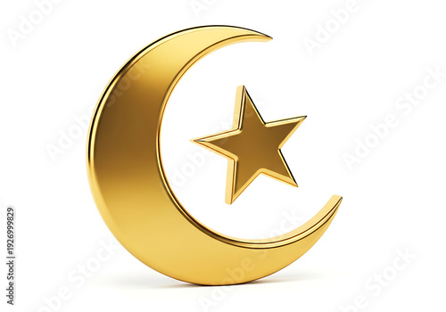 Golden Crescent Moon with Star Symbolizing Islamic Faith and Cultural Heritage in a Serene Atmosphere