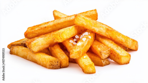 Golden, crispy French fries piled high, sprinkled with a touch of salt, perfect for adding flavor to your meals or snacking on.