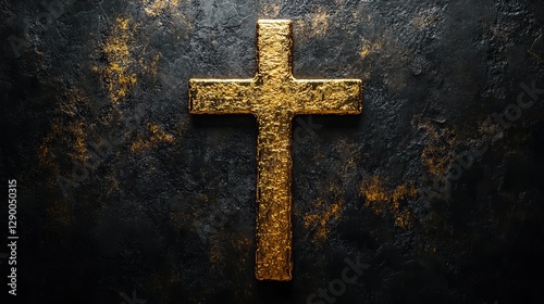 golden cross of jesus christ on a black background 3d illustration
