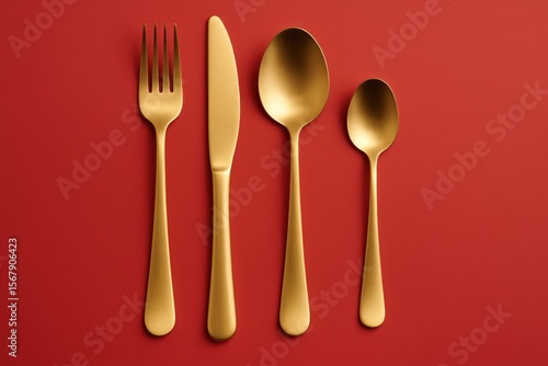 Golden cutlery wrapped in a crimson cloth