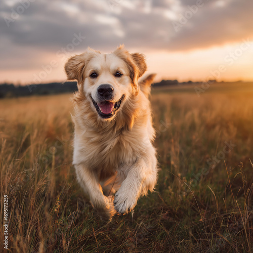 dog, golden retriever, running, grass, field, outdoors, sunset, warm light, action, motion, pet, canino, portrait, joyful, playful, happy, animal, lifestyle, nature, photo, freedom, energy, fast, tail, fur, ear, smile, tongue, paw, sprint, park, summer, adventure, candid, scene, friendly, companion, love, bright, bokeh, beautiful, gold, fun, scenic
