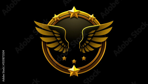 emblem, gold, wing, star, insignia, symbol, circular, dark background, achievement, award, decoration, elegant, luxury, metallic, ornate, prestige, rank, royals, shiny, vintage, badge, crest, design, graphic, heraldic, icon, label, motif, seal, signs, artistic, decorative, elite, exclusive, formal, glossy, illustrative, premium, refined, style, victorious, art, brilliant, ceremonial, classic