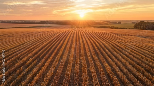 field, sunset, gold, agriculture, rural, farmland, harvest, landscape, sky, horizon, ray, sun, cloud, light, yellow, orange, brown, grass, summer, nature, hours, dawn, dusk, morning, evening, aerial, photo, wide, angle, farm, crop, natural, beautiful, peaceful, serenity, tranquil, countryside, green, view, scene
