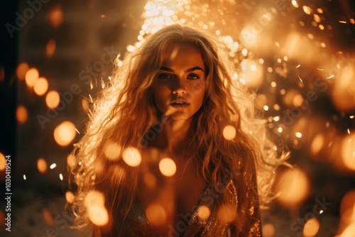 portrait, gold, photo, adult, aesthetic, woman, person, celebration, fireworks, light, fire, darkness, flare, christmas lights, fashion, effect, face, film, holiday, fantasy, happy, human, night, photo, smile, burn, hair, head, glowing, lighting, sparkler, female, event, image, illuminated, closeup, young adult, coiffure, long hair, head shot, looking, mystery, blond, motion, heat