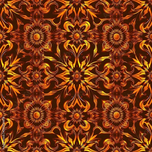 damask, pattern, seamless, floral, gold, gold, orange, brown, dark, luxury, elegant, ornate, intricate, decorative, background, texture, design, wallpaper, textile, fabric, repeat, vintage, retro, classic, traditional, style, art, motif, abstract, illustration, surface, print, fashion, home decor, upholstery, interior design, opulent, regal