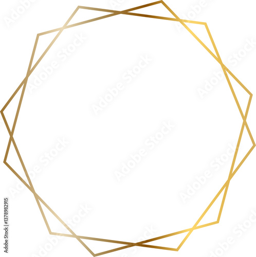 Golden frame with dodecagon shape creating a sophisticated and elegant design, ideal for invitations, cards, or any project requiring a touch of luxury and modernism