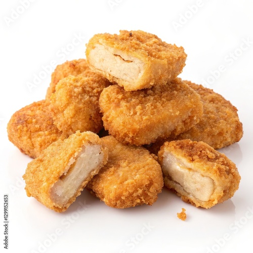 Golden Fried Chicken Nuggets Close-up, Stacked Composition, Crispy Texture, Fast Food Concept, Chicken Nuggets Fast Food, Appetizer