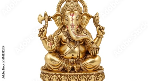 Golden ganesha idol isolated on white background