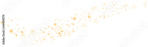 Golden glitter and bokeh on transparent backdrop. Luxury particles with stardust. Glow light effect. Magic Christmas composition. Special shine for poster or advertising. PNG.