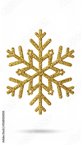 Golden Glitter Snowflake on White Background