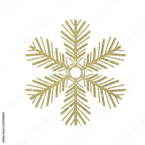 Golden glitter snowflake on white background. Element for design.