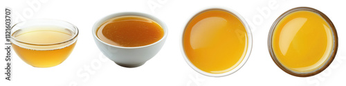 Golden Honey in Bowls Jars Sweet Viscous Food Dessert Culinary Breakfast Snack Ingredient Texture on transparent background