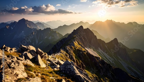 mountain, mountain, peak, peak, ridge, ridge, landscape, nature, sky, cloud, cloud, sunset, sunrise, gold, light, sunlight, rock, rock, stone, stone, terrain, alpine, wilderness, travel, tour tourism, scenic, view, panorama, altitude, summit, height, elevation, range, geology, formation, environment, adventure, explore, hiking, trekking, vacation, destination, background, wallpaper, majestic, impressive, huge, expansive