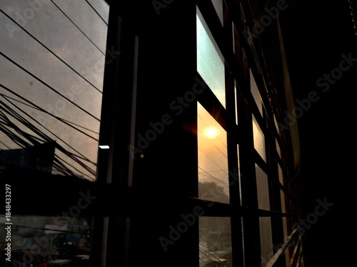 window, sunset, urban, grid, wire, silhouette, horizon, sky, city landscape, perspective, view, architecture, interior, exterior, commercial, contrast, geometric, moody, abstract, dramatic, gold, atmosphere, concept, inspiration, template, wallpaper, space, construction, housing, telecom, infrastructure, energy, glasses, frame, pane, building, apartment, metropolis, office, property