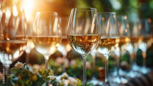 wine, goggles, white, drink, alcohol, beverage, celebration, party, event, sunlight, gold, hours, summer, romantic, elegant, festive, table, setting, floral, decoration, refreshment, liquid, crystal, clear, sparkling, toast, cheer, gathering, occasion, luxury, premium, vintage, catering, reception, festival, tasting, vinery, bottle, glassware, bouquet, flower