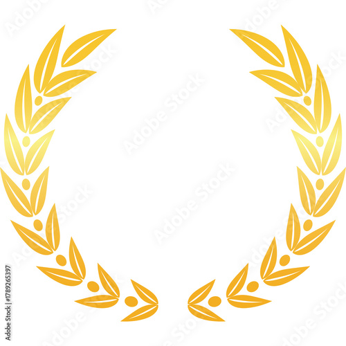 laurel, chaplet, gold, gold, gradient, circular, decoration, award, victory, success, achievement, winner, celebration, honour, prize, emblem, symbol, design, graphic, element, ornament, foliage, leaf, botanical, elegant, luxury, retro, vintage, classic, art, illustration, clip art, transparent, background, isolated, template, copy space, empty, simple, clean