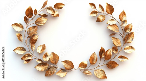 gold, leaf, chaplet, botanical, design, tree branch, elegant, decoration, frame, white, background, metallic, shiny, plant, nature, art, ornate, decorative, detail, texture, surface, light, bright, object, isolated, studio, still, life, pattern, structure, material, metal, curve, shape, form, simple, minimal, clean, modern, luxury, classic, style, beauty, graphic, element, illustration, rendering, nobody