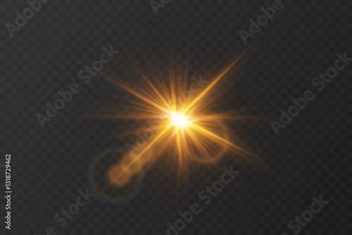 Golden light effect, star flash. On a transparent background.