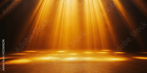 Golden light rays illuminating a dark space abstract art digital creation dramatic atmosphere atmospheric perspective serenity and inspiration