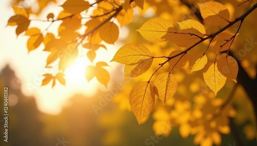 Golden linden tree branches with golden leaves against the warm afternoon sky, branches, trees, warm
