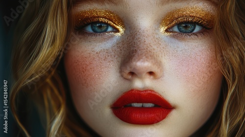 make-up, woman, beauty, closeup, eye, red lips, gold, face, skin, cosmetic, hair, portrait, model, fashion, glamour, girl, make-up, style, glossy, trendy, honed, natural, skincare, charming, attractive, beautiful, pretty, elegant, stunning, gorgeous, radiant, professional, glamourous, look, metallic, gold, lipstick, face painting, freckle, natural makeup, eye makeup, red, blue eye