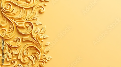 gold, yellow, background, ornate, floral, design, pattern, swirl, leaf, curl, texture, art, decorative, elegant, luxury, vintage, classic, baroque, rococo, scroll, motif, detail, element, embellishment, flourish, arabesque, filigree, illustration, graphic, three-dimensional, rendering, abstract, style, aesthetic, image, artwork, template, frame, border
