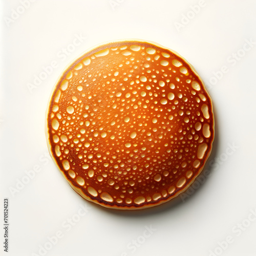 Golden pancake on a white background, a symbol of Maslenitsa, ideal for culinary websites and holiday menus
