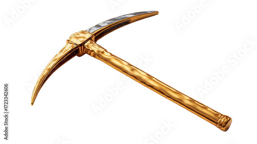 Golden pickaxe with shiny metallic surface creating a detailed mining tool equipment illustration isolated on white background