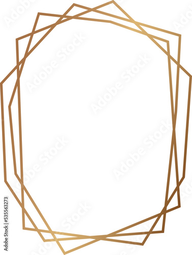 Golden polygonal line frame. Decorative shine border