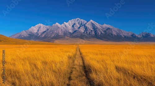 Golden Prairie Path to Majestic Mountains
