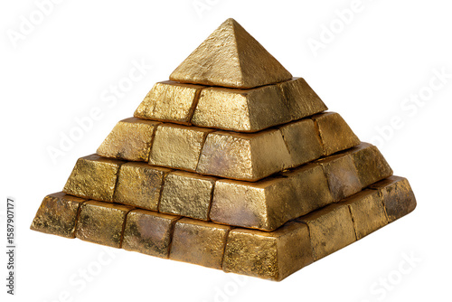 Golden pyramid of wealth isolated on transparent background