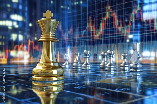 chess, queen, king, knight, bishop, rook, pawn, game, strategy, tactic, board, digital, art, futuristic, city, city landscape, technology, gold, metallic, shiny, chessboard, competition, victory, defeat, challenge, intelligence, power, dominance, ambition, leadership, future, progress, innovation, ai, artificial, player, move, decision, risk, reward, success, bankruptcy, outcome, perspective, control