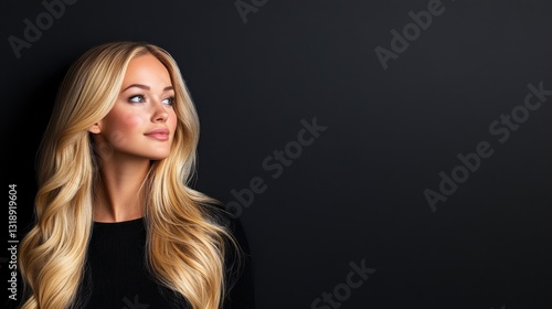 hair, blond, woman, beautiful, portrait, female, coiffure, fashion, beauty, elegant, style, long hair, gorgeous, glamour, wavy, curl, face, model, happy, cheerful, lady, luxurious, studio, stylish, pretty, adult, one person, young, confident, make-up, attractive, looking away, dreamy, serene, natural beauty, shiny, smooth, honed, radiant, charming, grace, sophisticated, chic, classic, stunning, aesthetic
