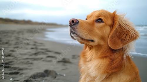 Golden Retriever Beach Gaze, Ocean View, Calm