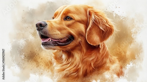 dog, retriever, gold, portrait, watercolor, animal, canino, pet, puppy, furry, friends, loyal, happy, cute, adorable, playful, majestic, beautiful, elegant, gentle, sweet, smart, faithful, companion, mammal, domestic, gold, brown, hair, coat, eye, face, head, mouth, nose, tongue, ear, expression, profile, side, background, art, illustration, painting, digital, image, photo, closeup, nature